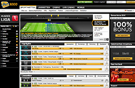 Da Bet3000 auch Offline-Präsenzen hat, ist der Bekanntheitsgrad überdurchschnittlich hoch. Beim Bet3000 Test haben wir uns aber nur das Online-Wettangebot angeschaut und dabei unter anderem festgestellt, dass alle Einzahlungen ohne Gebühren stattfinden, ein ordentliches Sportwetten-Portfolio verfügbar ist und eine attraktive App für mobile Kunden angeboten wird. Gut gefallen hat uns auch das TÜV-Zertifikat, denn es gibt nicht viele Wettanbieter, die vom TÜV zertifiziert werden.