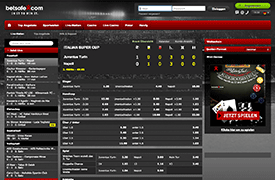 Das Sportwetten-Angebot von betsafe ist sehr vielseitig, auch wenn die ganz großen Höhepunkte in unserem Wettanbieter Vergleich mit anderen Buchmachern etwas fehlen. Dennoch gibt es insbesondere bei den Fußballwetten, aber beim Eishockey, Tennis und diversen anderen Sportarten eine sehr attraktive Auswahl an aktuellen Wetten. Zudem ist es ein großer Vorteil, dass die Webseite sehr schnell und komfortabel ist. Das ist längst nicht bei allen Sportwetten-Anbietern der Fall.